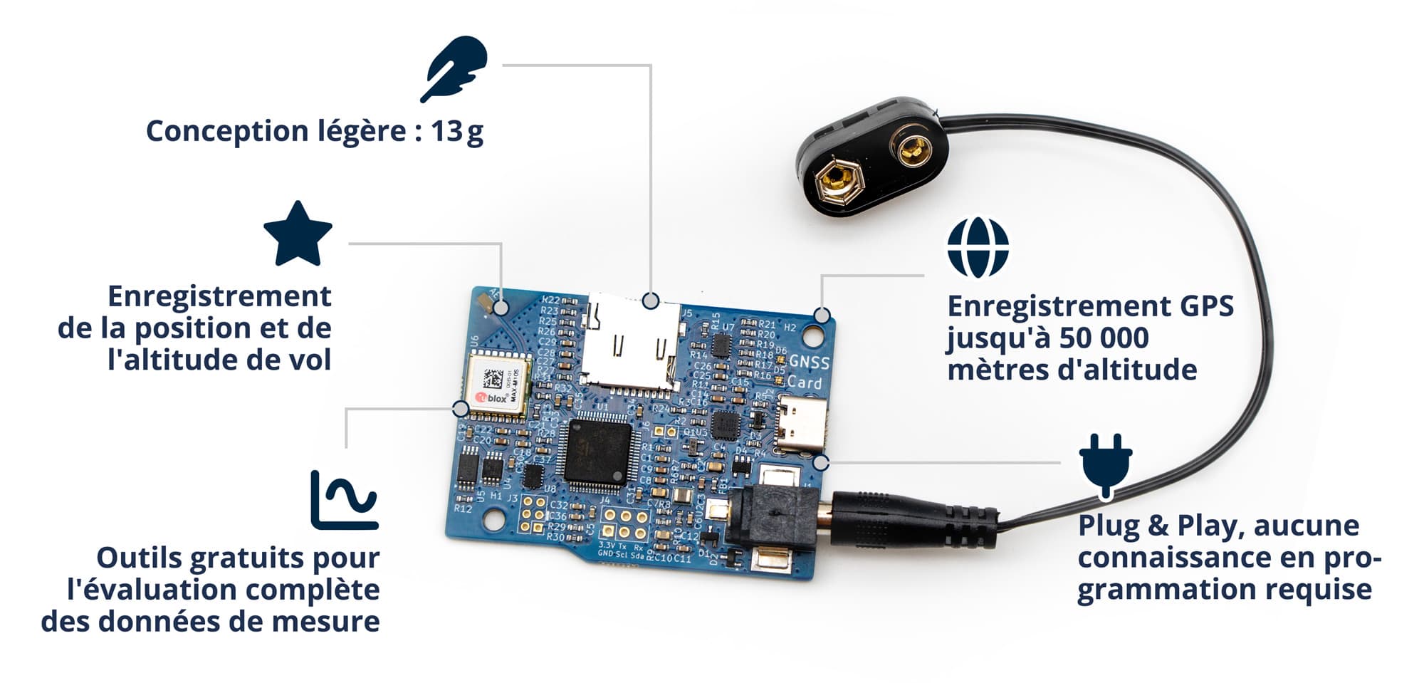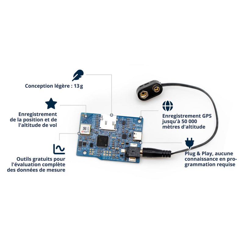 L’enregistreur de données STRATOmini a été spécialement conçu pour enregistrer la position GPS exacte de votre sonde stratosphérique. Le STRATOmini enregistre les données GPS jusqu’à 50.000 mètres d’altitude! Il permet donc d’enregistrer la totalité de l’itinéraire du vol et de dévoiler l’altitude atteinte. Les données GPS sont enregistrés sur une carte microSD toute les deux secondes et peuvent facilement être évalués sur l’ordinateur après le vol. Notre outil en ligne vous permet de visualiser les graphes de votre itinéraires en quelques clics. Pour parfaire notre offre, l’itinéraire peut être visualiser en 3D sur Google Earth. Avec un poids de 13 g (!), le STRATOmini est extrêmement léger et, grâce à son design de la taille d’une boîte d’allumettes, il peut être placé facilement dans une sonde, aussi petite soit elle. Notre enregistreur de données STRATO3 est idéal si vous souhaitez enregistrer davantage de donnés lors de votre vol stratosphérique (par exemple la température, la pression atmosphérique et le taux d’humidité).