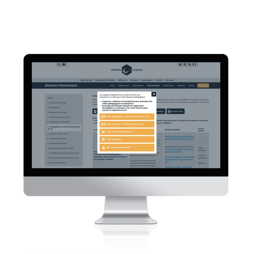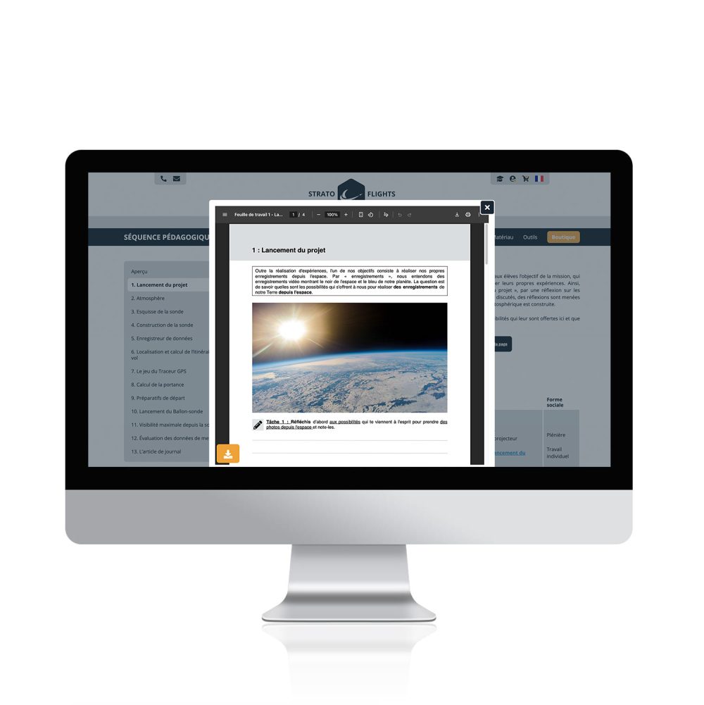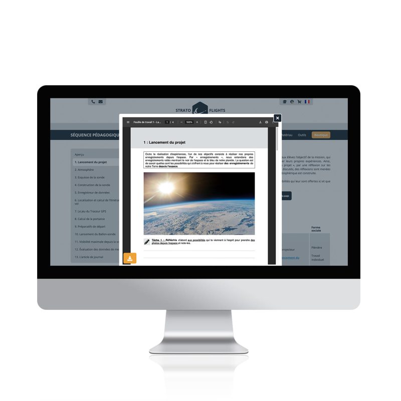 Après l’achat de l’unité d’enseignement, la section “Unité d’enseignement” sera activée pour vous dans votre compte Stratoflights (à www.stratoflights.com/fr/mon-compte/). Cela vous donnera accès au matériel pédagogique et au Weather Balloon Guide.