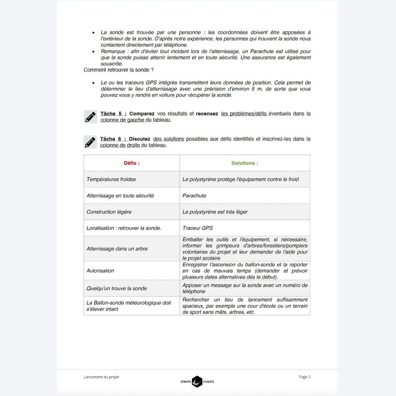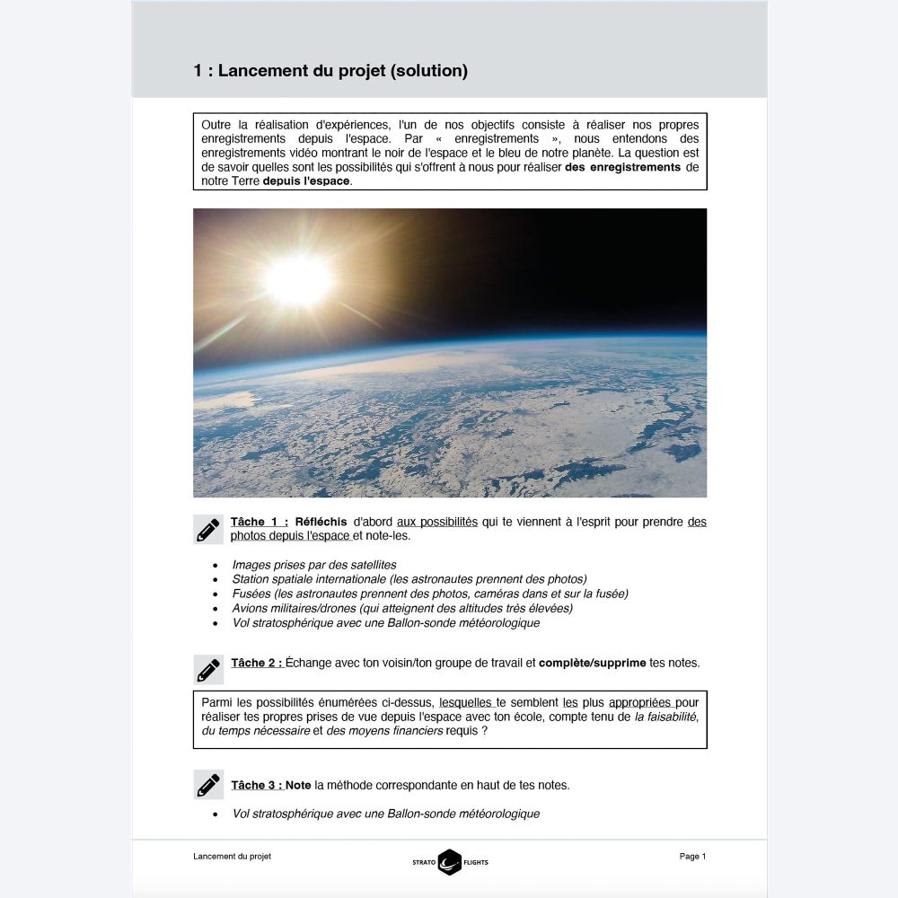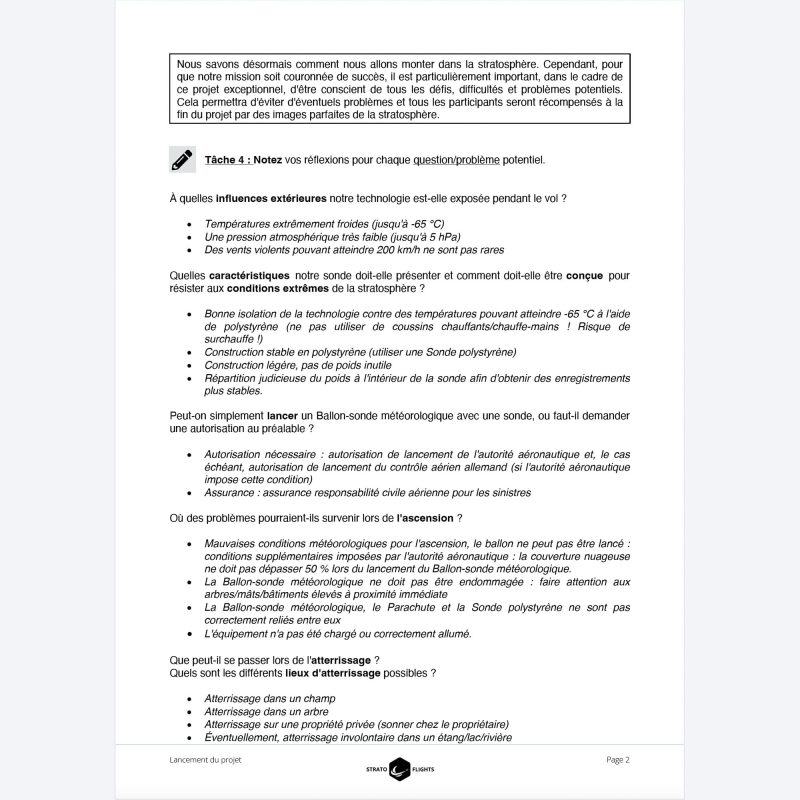 - Des conseils précieux et un planning pour toute la journée du vol stratosphérique, spécialement destinés aux enseignants